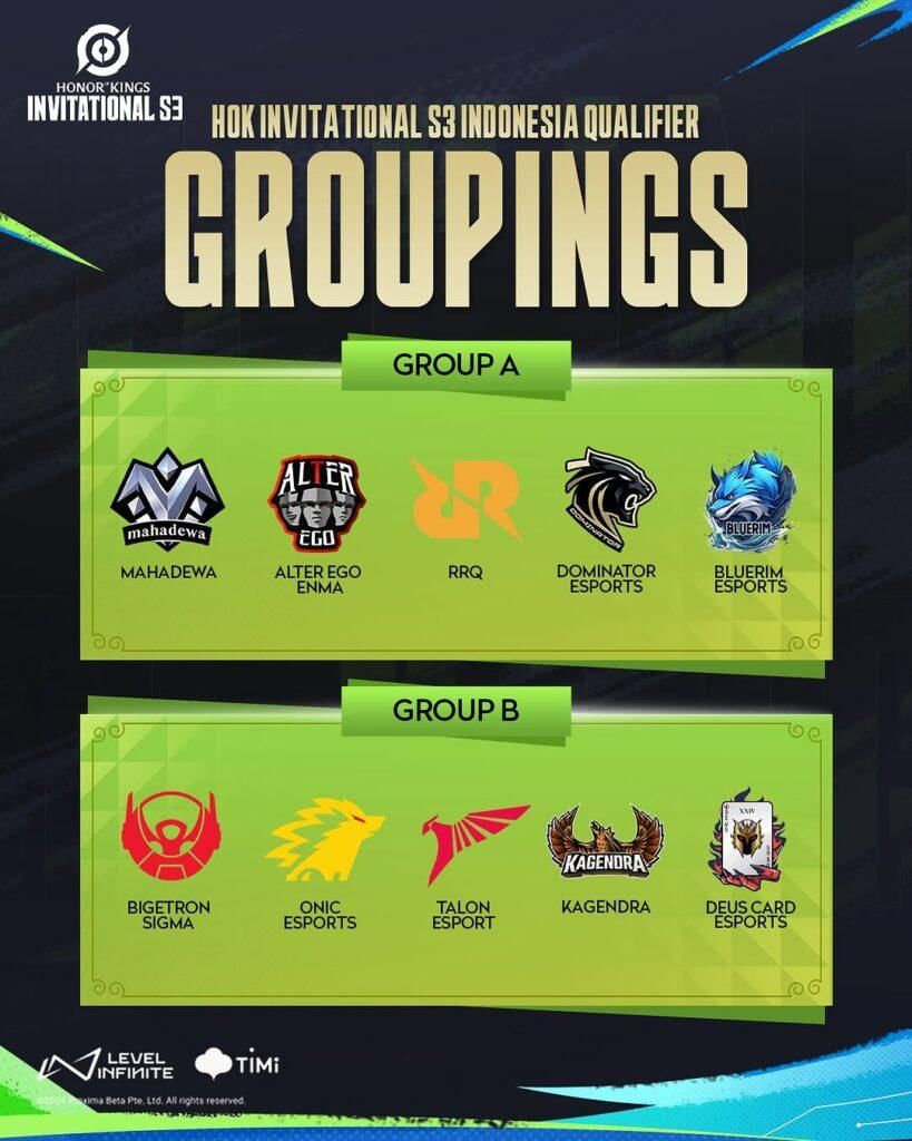 Dengan lolosnya Bluerim Esports dan Deus Card, maka lengkap sudah daftar tim yang akan bertanding di HOK Invitational S3 – Indonesia Qualifier. Total ada 10 tim yang akan berpartisipasi, yang dibagi ke dalam 2 grup sebagai berikut: