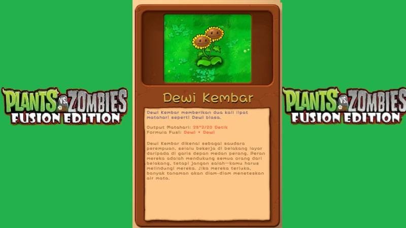 Dewi Kembar adalah versi yang lebih kuat dari Dewi. Ia mampu menghasilkan dua kali lipat matahari dibandingkan Sunflower biasa, yang sangat membantu dalam permainan saat Kamu membutuhkan banyak energi matahari untuk menanam lebih banyak plant. Dalam Plant vs Zombie Fusion, Kamu bisa meningkatkan Dewi Kembar lebih lanjut dengan fusion untuk membuatnya lebih efisien atau memberikan kemampuan pertahanan agar ia tidak mudah dimakan zombie.