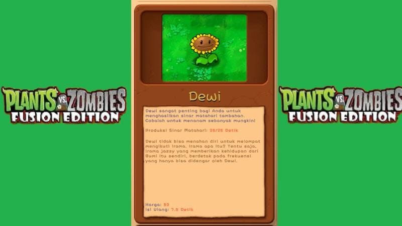 Versi Bahasa Indonesia dari Plant vs Zombie Fusion tidak hanya memberikan terjemahan teks dalam game, tetapi juga mengganti nama-nama plant dengan nama Indonesia yang familiar dan menggemaskan. Misalnya, Peashooter kini berganti nama menjadi Kipli, dan Sunflower menjadi Dewi. Nama-nama ini tentunya memberikan pengalaman bermain yang lebih akrab bagi pemain Indonesia.