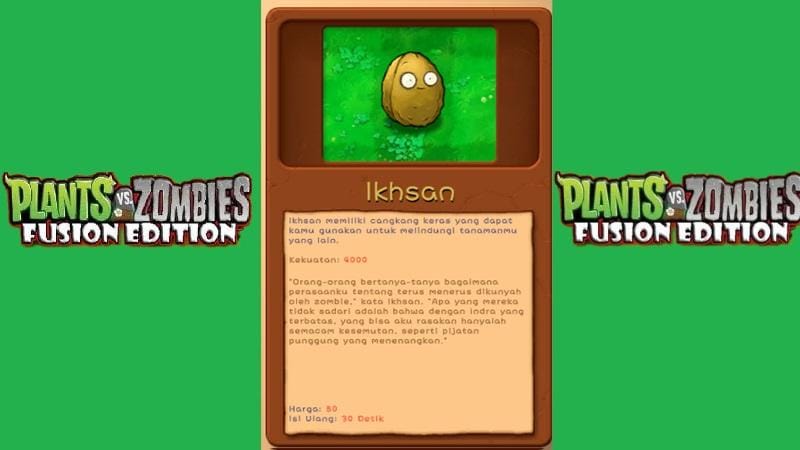 Ikhsan adalah plant pelindung yang sangat berguna. Ia tidak menyerang, tetapi menjadi tameng yang kokoh untuk memperlambat gerakan zombie. Ikhsan memiliki pertahanan yang sangat kuat, dan zombie akan membutuhkan waktu lama untuk menghancurkannya. Ini memberimu waktu yang berharga untuk menyerang balik zombie tersebut. Dalam versi fusion, Kamu bisa menggabungkan Ikhsan dengan plant lainnya agar ia memiliki kemampuan pertahanan yang lebih baik atau bahkan kemampuan menyerang.
