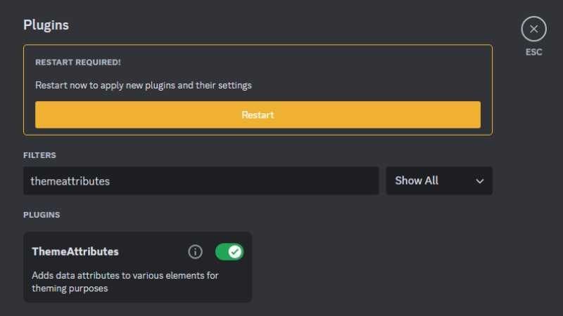Dari setting, buka opsi Plugins lalu cari ThemeAttributes dan aktifkan. Setelah itu, restart Discord dan arahkan kembali menuju Themes yang berada di Settings. Pilih Open Themes Folder lalu ekstrak tema yang sudah kalian unduh pada tautan ini menuju folder themes.