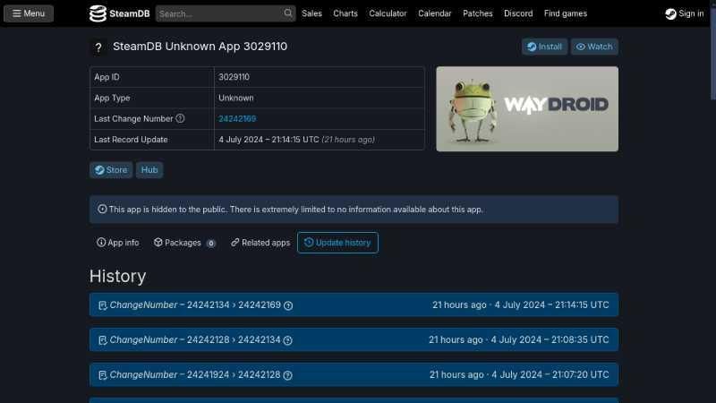 Melalui post terbaru di X, Brad Lynch selaku leaker membagikan penemuannya di Steam. Valve baru-baru ini menyisipkan lima program menuju Steam yang dikategorikan sebagai unreleased atau belum dirilis. Salah satu program tersebut tidak lain dan tidak bukan adalah WayDroid.