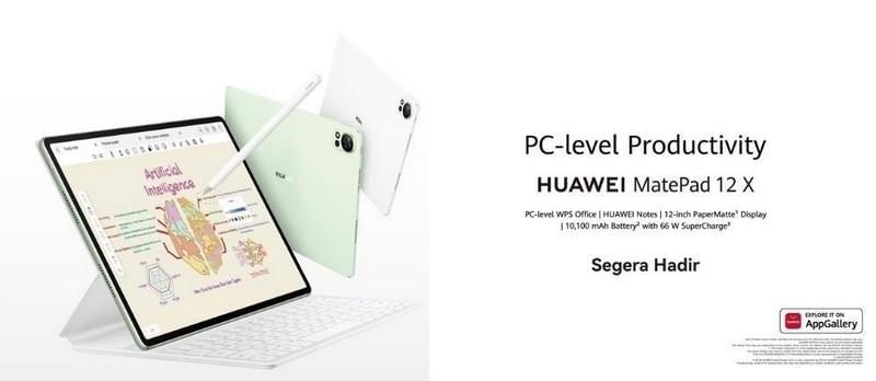 HUAWEI resmi memperkenalkan HUAWEI MatePad 12 X, tablet generasi terbaru dari seri tablet terlaris, HUAWEI MatePad Air. HUAWEI MatePad 12 X menghadirkan pengalaman lebih dari laptop, dengan layar Ultra Bright dan desain stylish, serta ringan untuk mendukung produktivitas di mana saja. HUAWEI MatePad 12 X akan segera tersedia di pasar Indonesia pada awal tahun 2025.